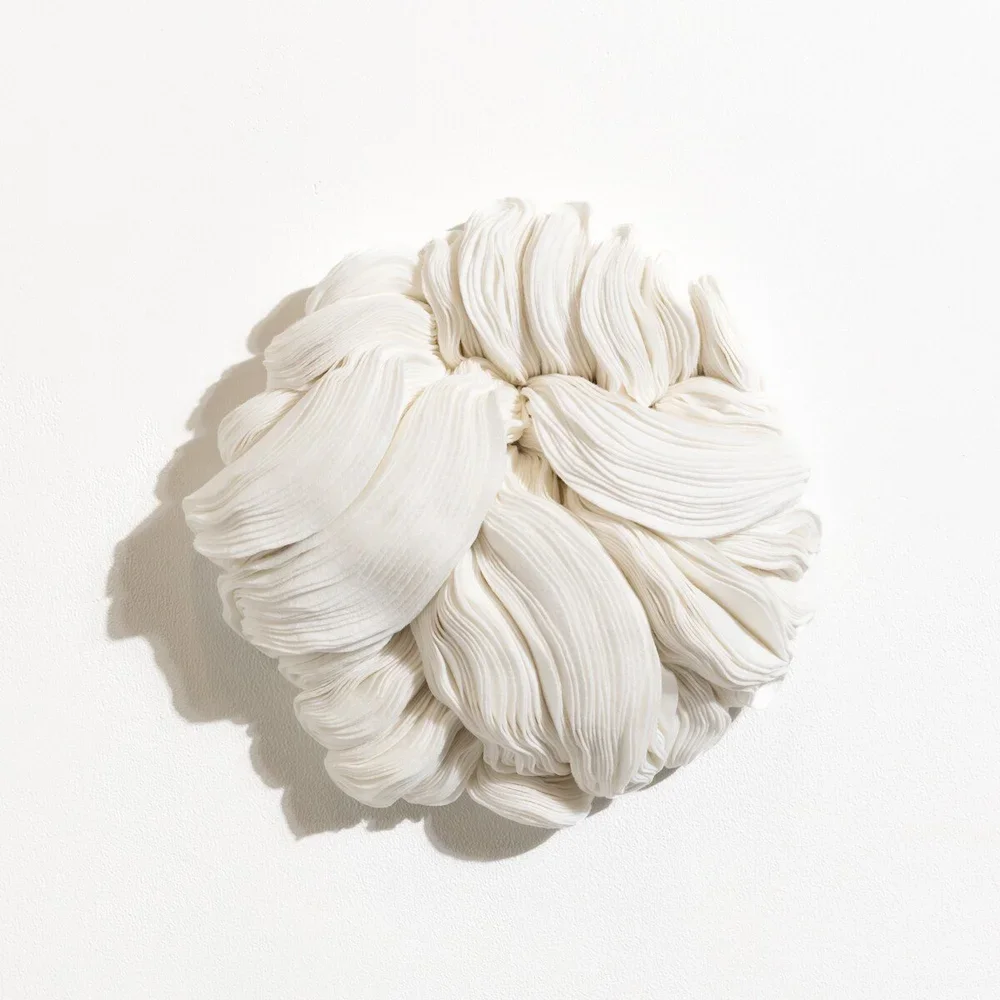 Bamboo felt, thread, non-solvent adhesive, mounted on birch panel treated with linseed oil and eco-friendly paint